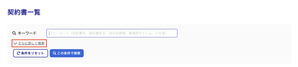 契約書一覧で「さらに詳しく検索」をクリックし、入力欄を出します。